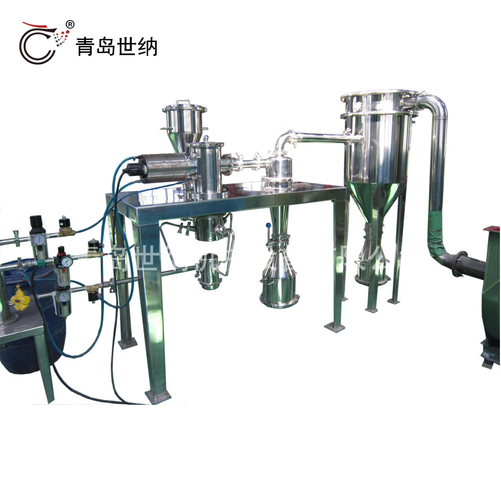 塵器、引風(fēng)機、電控櫃(guì)等組成。壓縮空(kōng)氣經過濾(lǜ)幹(gàn)燥除油後,通過特殊配置的噴嘴高速噴射入粉(fěn)碎腔內,在