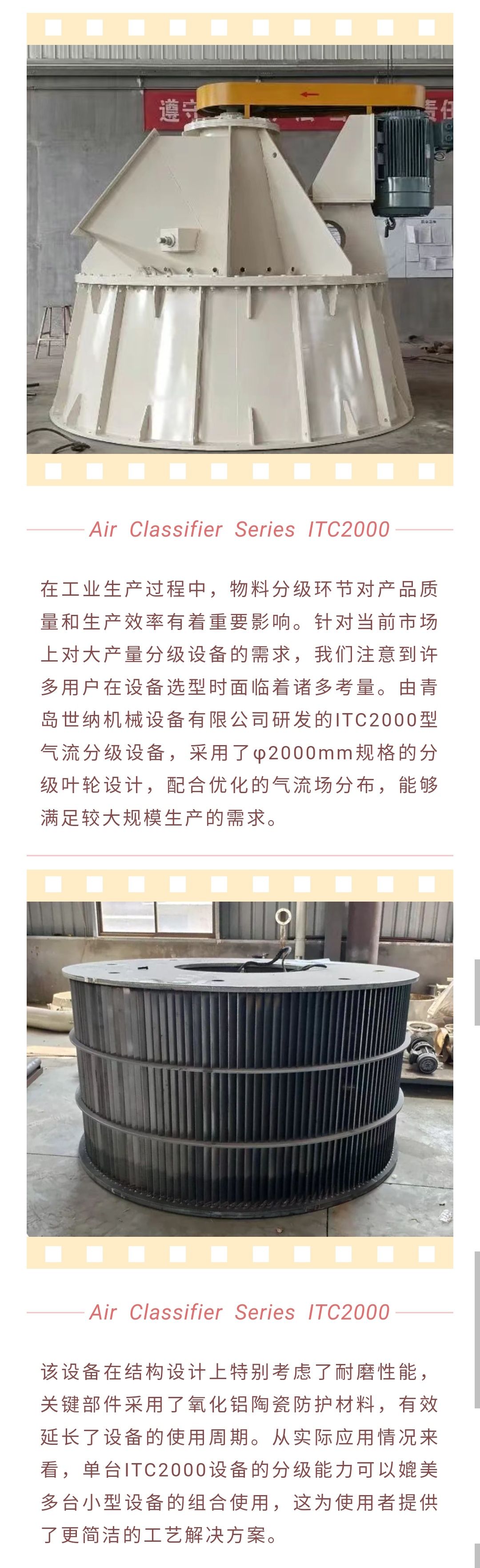 【青島世納】壓裂支撐劑原料(鋁礬土)用ITC2000大型超(chāo)微氣流分級機