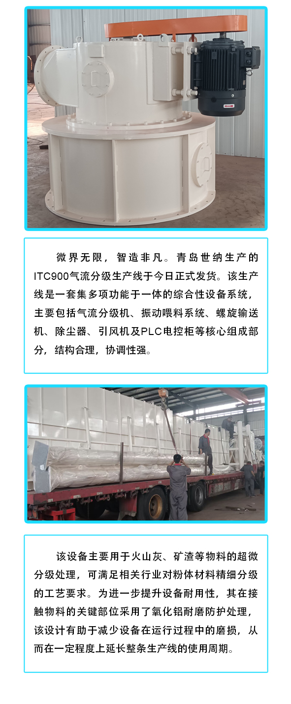【青島世納】超微火山灰及礦(kuàng)渣用ITC900氣流分級生產線
